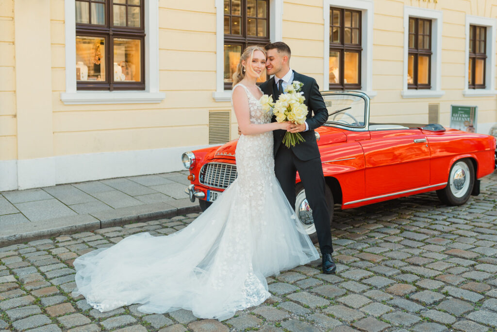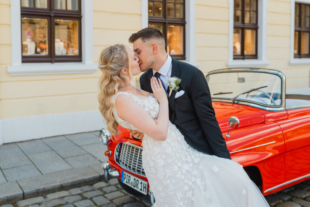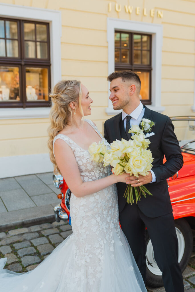 Nach den Vorbereitungen sind wir in die Dresdner Altstadt gegangen, um dort weitere Brautpaarfotos zu machen. Die historische Umgebung hat natürlich ihren ganz eigenen Charme, und Sophia und Pascal strahlten richtig in dieser Kulisse.