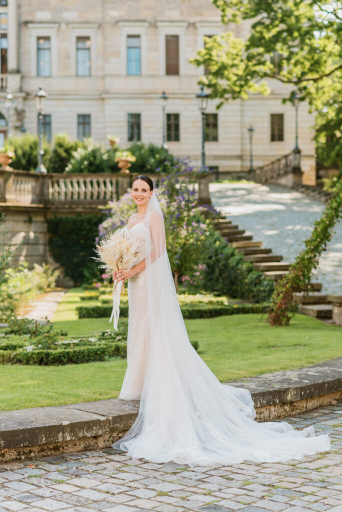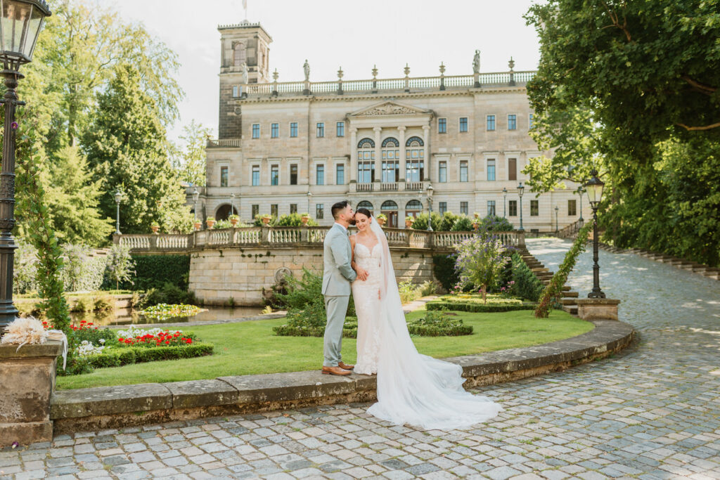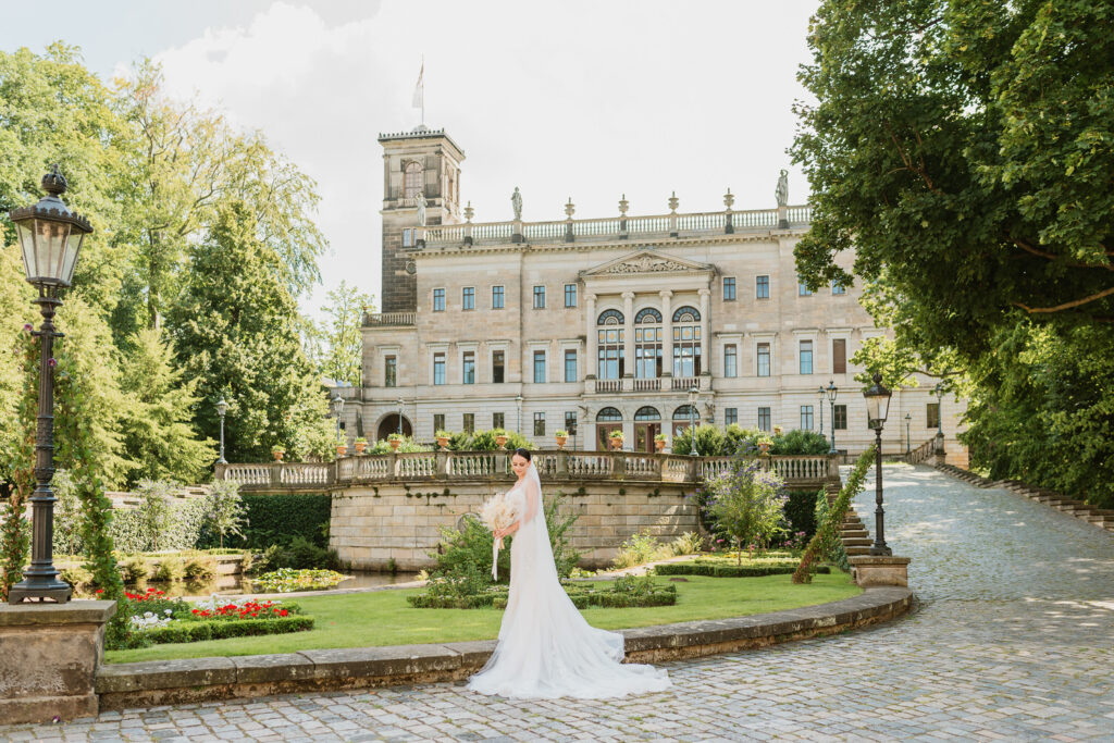 Ich habe im Laufe meiner Arbeit als Hochzeitsfotografin viele Hochzeitslocations gesehen, doch was Schloss Albrechtsberg für mich so besonders macht, ist nicht nur die wunderschöne Architektur, sondern auch die ruhige und romantische Atmosphäre. Hier kann man den Trubel der Stadt hinter sich lassen und in eine Welt voller Eleganz und Geschichte eintauchen. Außerdem bietet das Schloss bei jedem Wetter traumhafte Möglichkeiten – ob draußen bei Sonnenschein oder drinnen bei Regen, die Fotos werden immer beeindruckend.