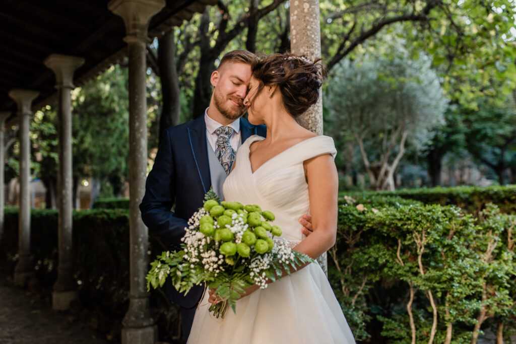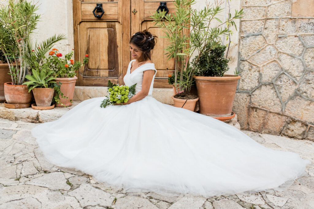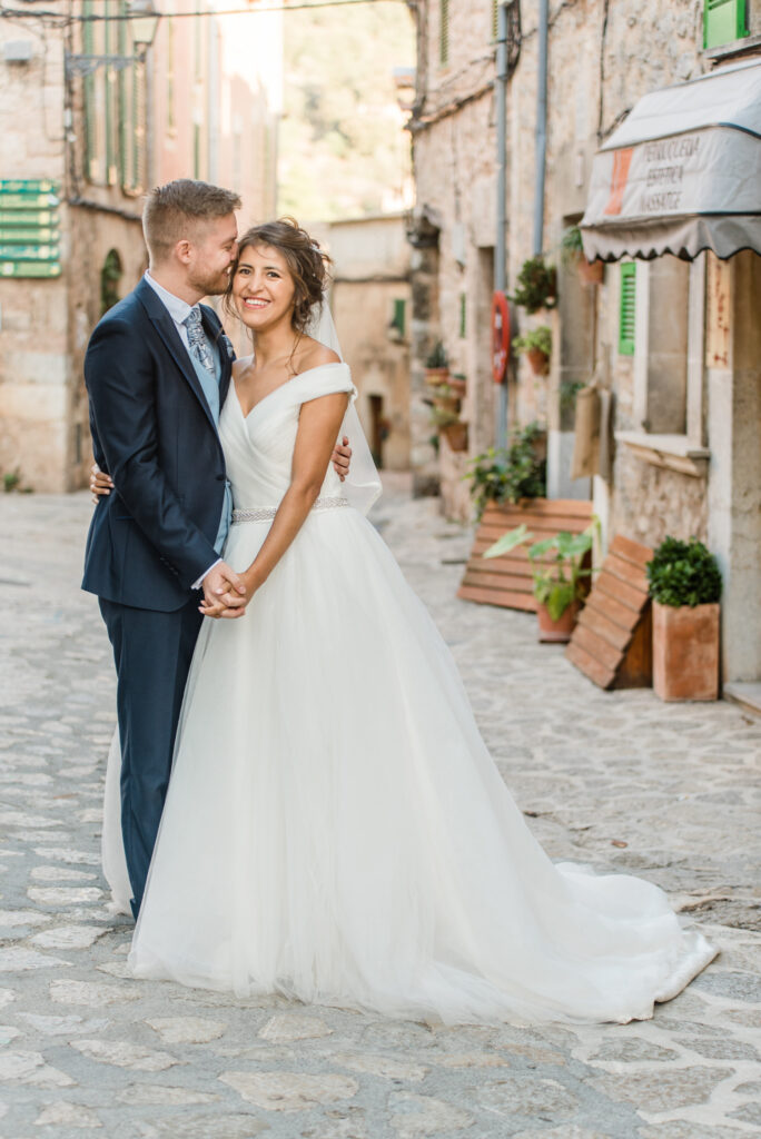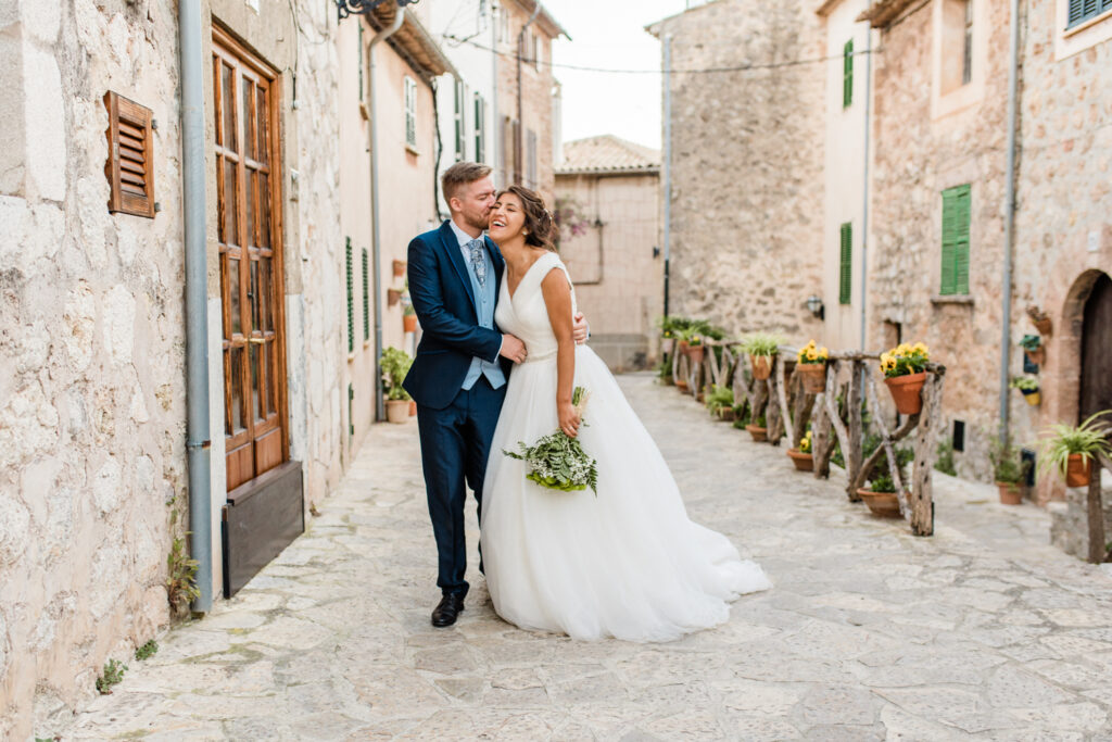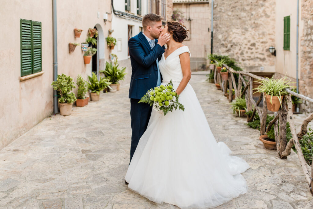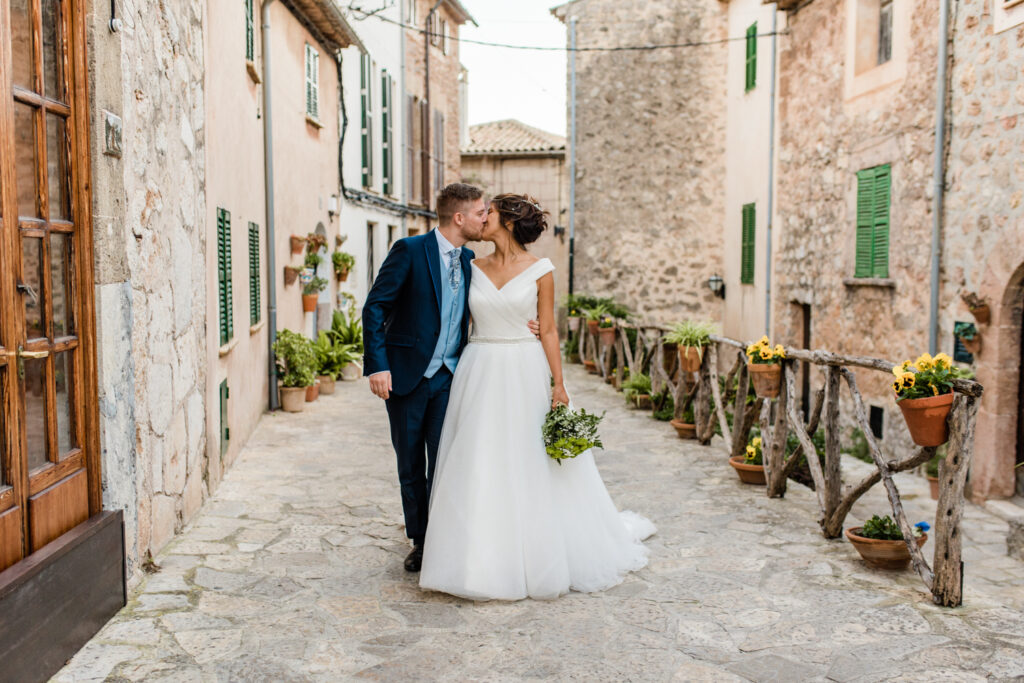 Nach zwei Tagen haben wir uns  auf ein Brautpaarshooting getroffen. Als Location haben wir die blumigen Straßen von Valldemossa ausgewählt.