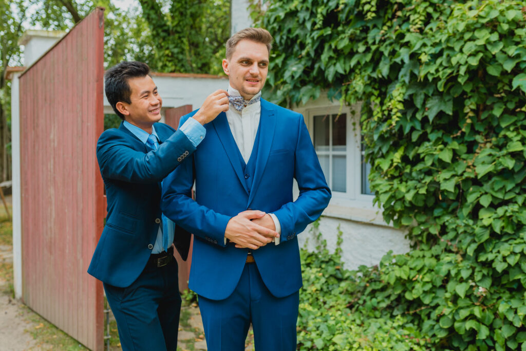 N & D feierten ihre Sommerhochzeit im wunderschönen Landgut Lisbeth, und ich muss sagen, die Location war wie gemacht für eine freie Trauung. Der Tag begann mit den Vorbereitungen der beiden, und die Aufregung lag förmlich in der Luft. Man konnte die Vorfreude bei dem Brautpaar deutlich spüren, und das hielt den ganzen Tag über an.