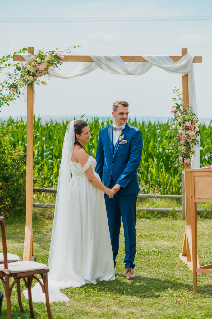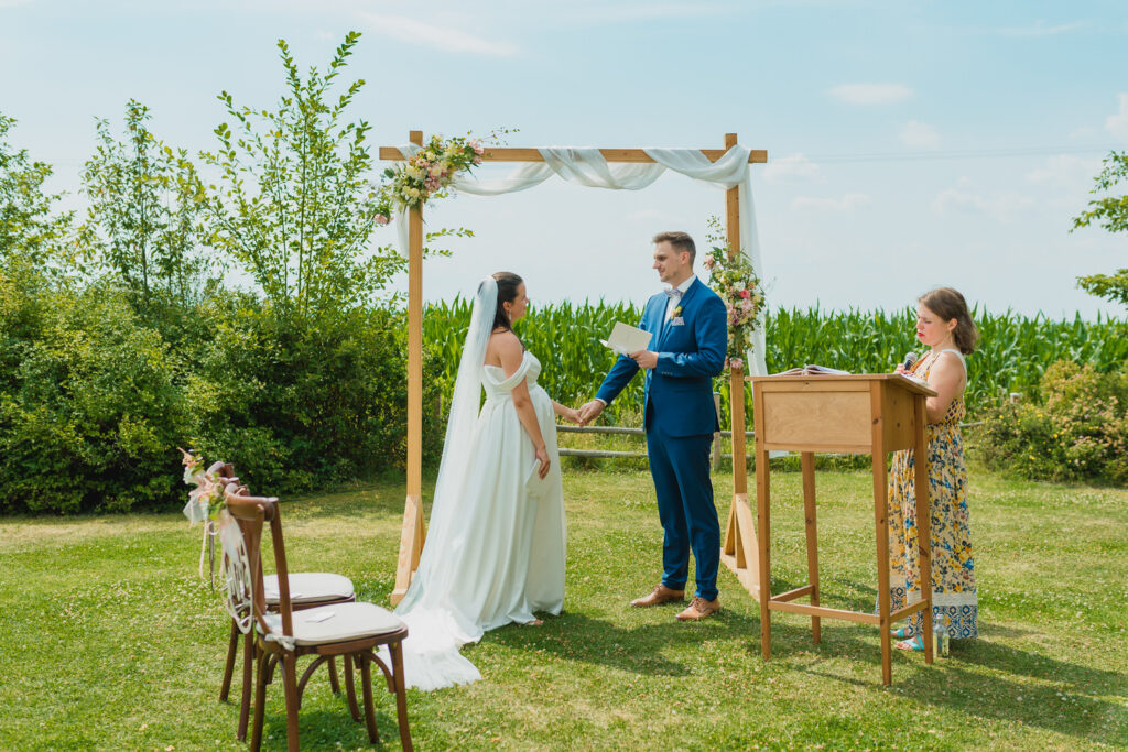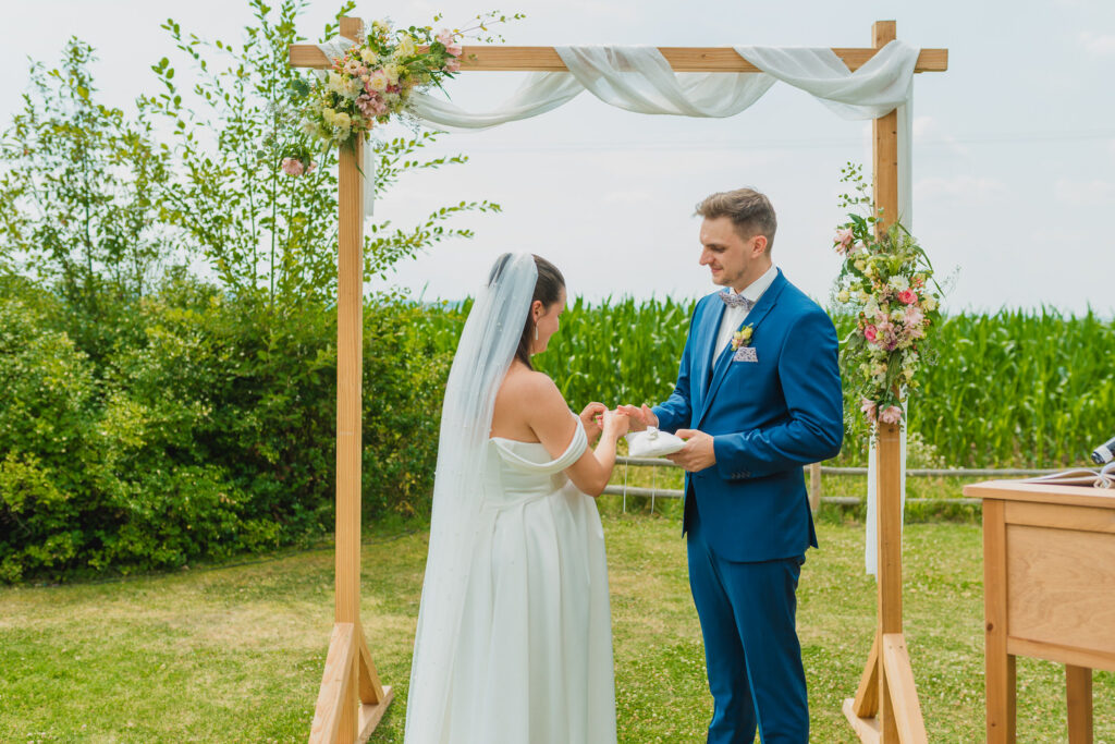 Die Trauung selbst war einfach traumhaft. Auf einer Wiese mit einem herrlichen Ausblick, umgeben von der Natur, gaben sich