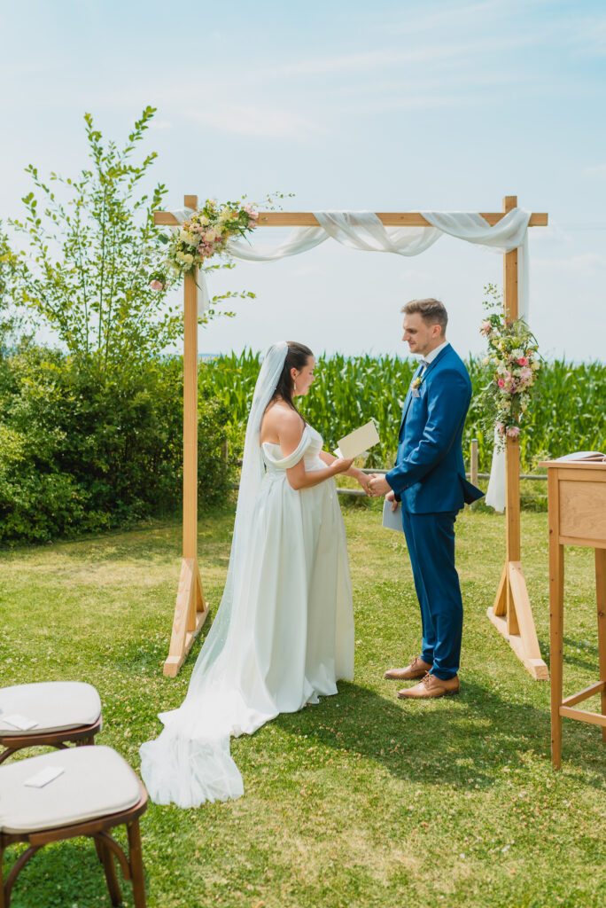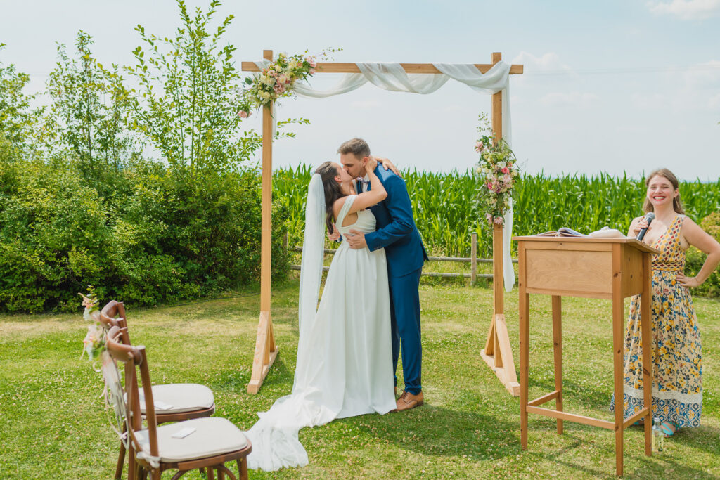 Alles in allem war es eine Hochzeit, die man nicht so schnell vergisst. Die Stimmung war locker, die Sonne strahlte, und es war einfach ein rundum perfekter Tag voller Emotionen, Freude und sommerlicher Leichtigkeit.